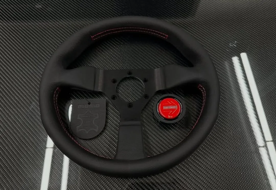 omo Monte Carlo Steering Wheel 320MM Leather w/ Red Stitching
