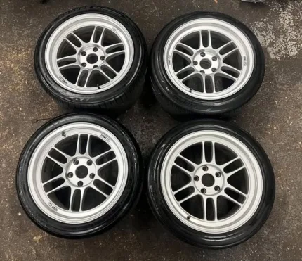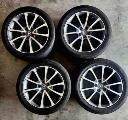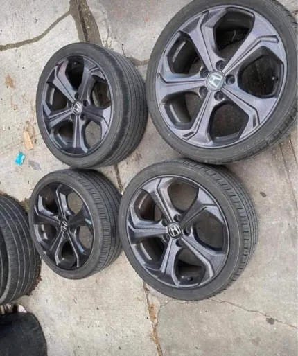 18x7.5 Original civic si 9th gen wheels. Wheels were re done in powder coat gloss black with silver and velvet sprinkle finish. Tires are fresh all around no dents or cracks at all.